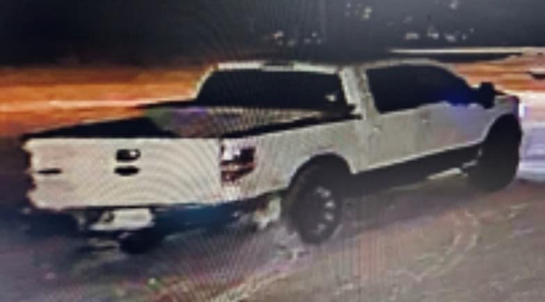 Police are also looking to identify an older-model white Ford F-150 with black rims. The truck has visible damage to the left-rear quarter panel and was observed fleeing the area. Photos of the suspect and vehicle have been released to help identify those involved.