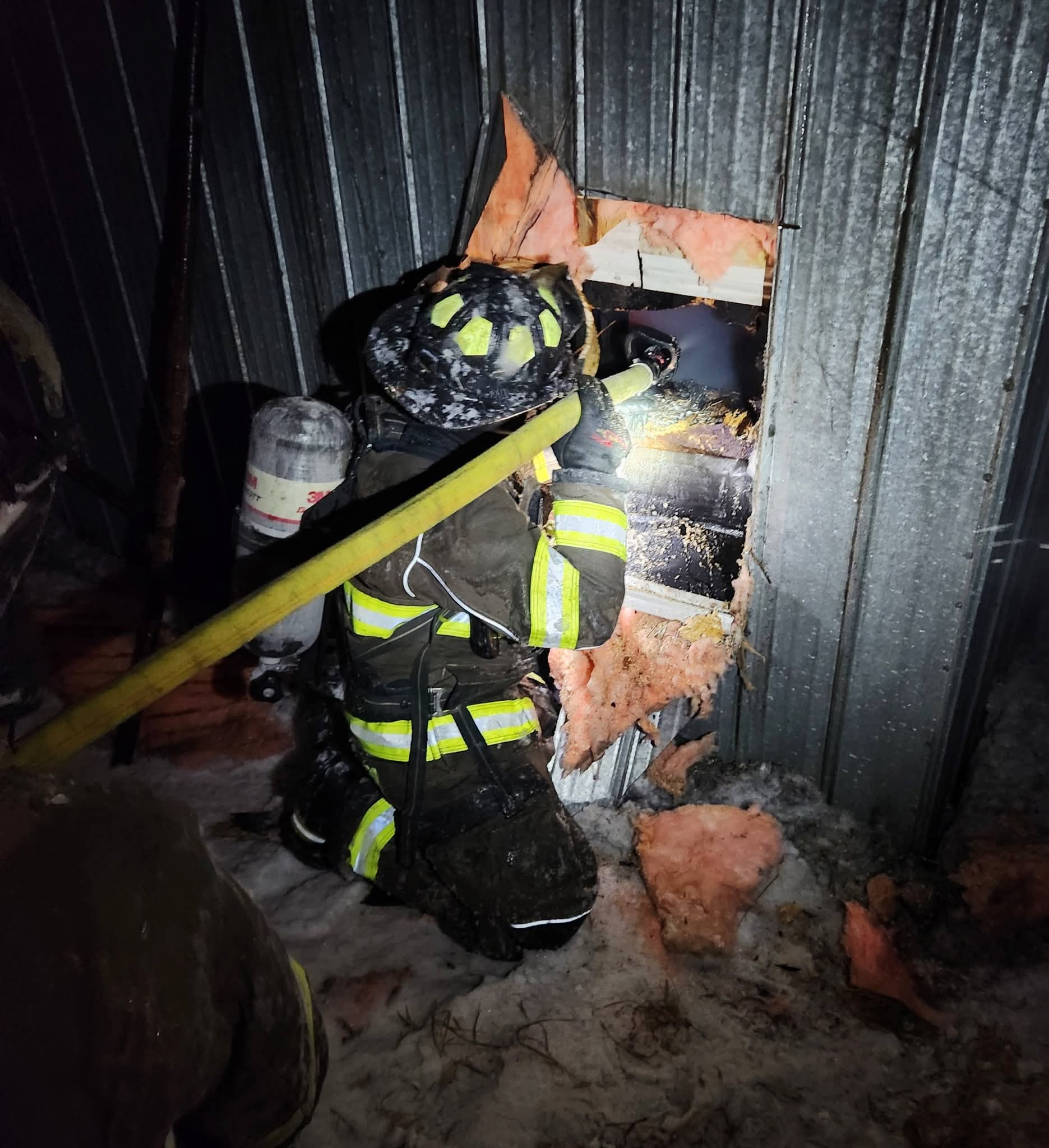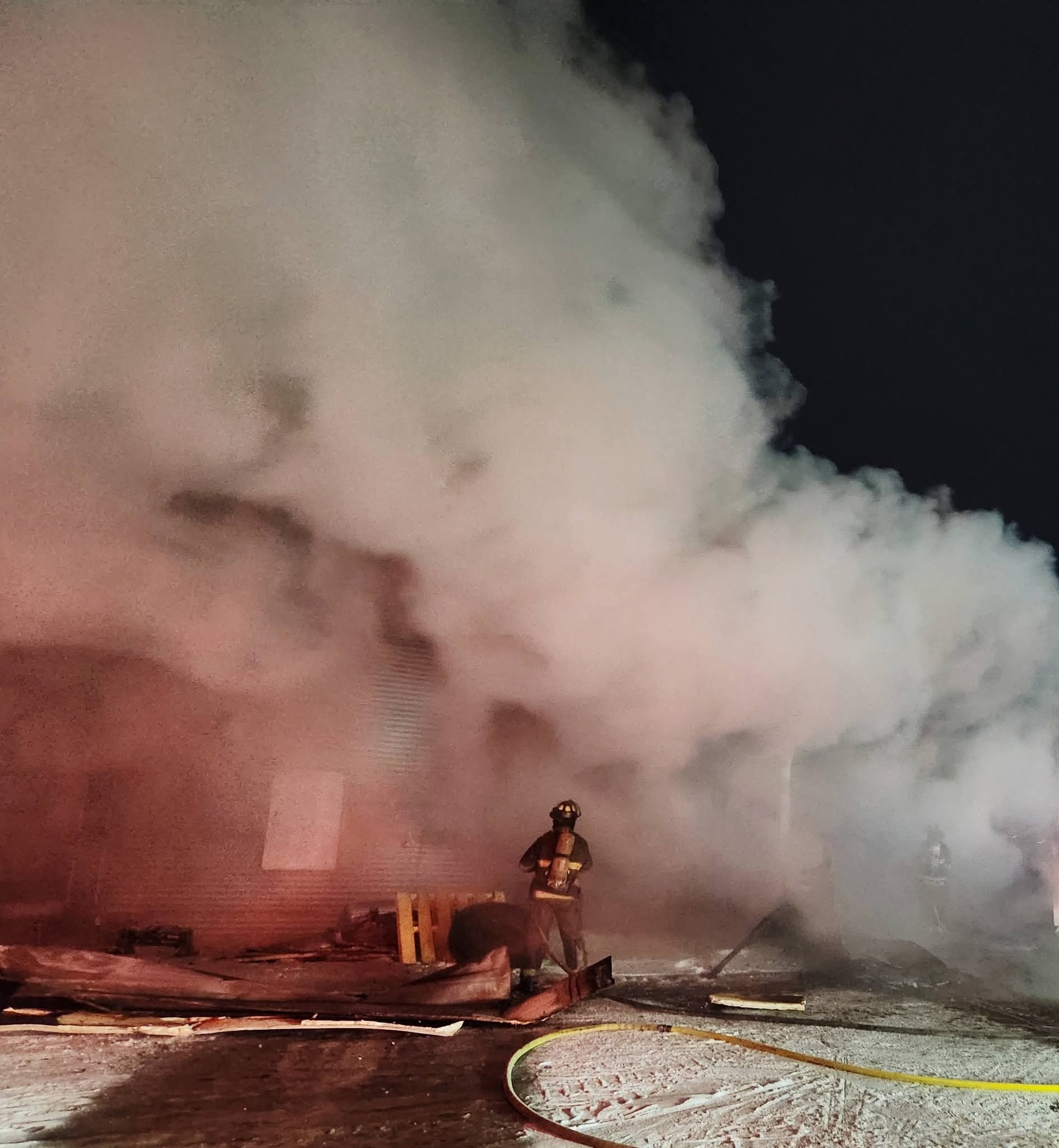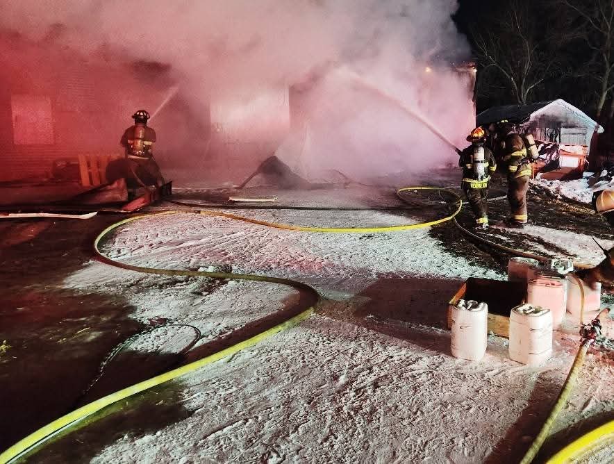 Firefighters immediately pulled attack lines and used foam to knock down the fire, while additional apparatus worked to establish a rural water shuttle to support suppression efforts.