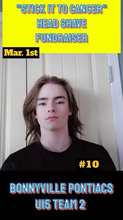 The head-shaving will be in the C2 hub during the 1st intermission. Those players not shaving their heads will have vibrant coloured hair in support of the cause. Immediately following the head shaving the boys will be going up to the running track to run as many laps as they can for the cause. The boys have been collecting donations for the last month and will be accepting donations the night of in the hub for shaving their heads and running laps.
