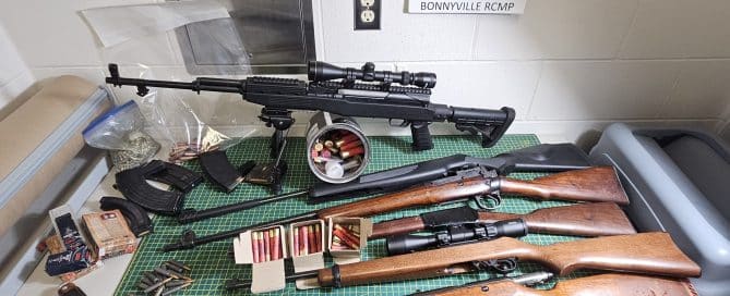 Firearms call leads to two search warrants, four arrests, and three stolen firearms: Saddle Lake RCMP