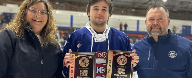 Quinn Szpak receives his two NEAJBHL awards. Image: St. Paul [...]
